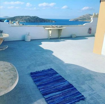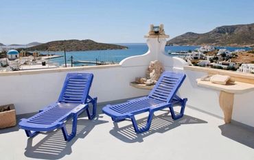 Η βεράντα του προσφέρει την απίστευτη θέα όλου του λιμανιού και του νησιού. Η θέα με τα μοναδικά ηλιοβασιλέματα του νησιού θα σας καταπλήξει.